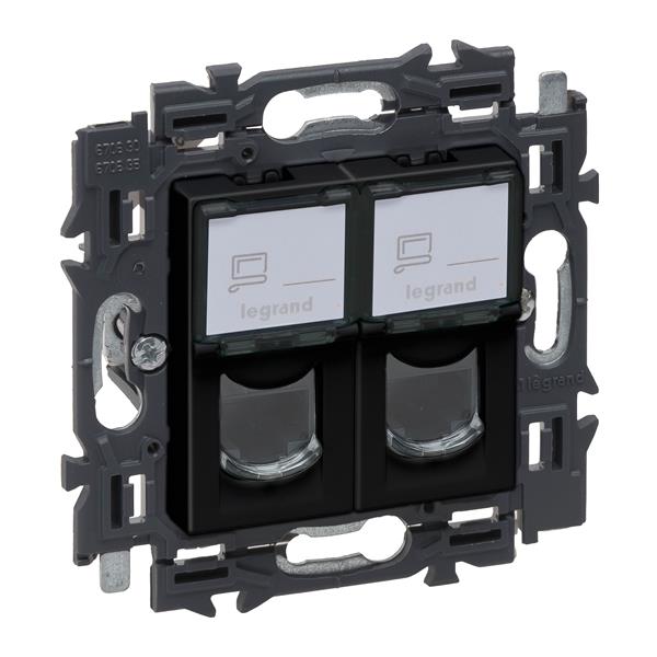 Legrand Valena Next contactdoos 2xRJ45 UTP cat6 volledig apparaat zwart met spanklauwen