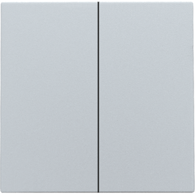 Afwerkingsset voor dubbele elektronische schakelaar of drukknop, sterling. De toets en het middenschijfje (boord) vormen één geheel. De demontage gebeurt eenvoudig door het lostrekken van de centraalplaat van het mechanisme.
