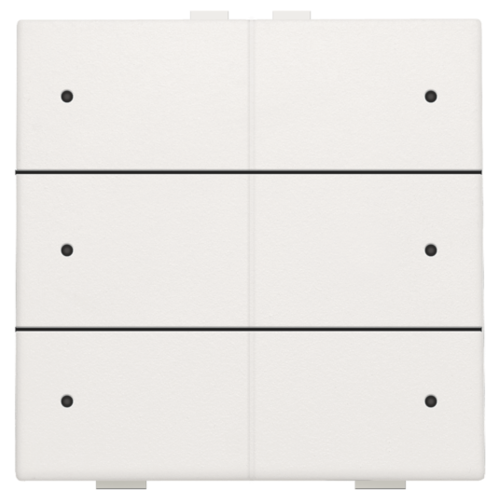Deze zesvoudige drukknop kan ingesteld worden om verschillende acties en routines in een Niko Home Control II installatie op busbekabeling te bedienen. Hij is uitgerust met programmeerbare leds die feedback geven over de uitgevoerde actie. Daarnaast kan de drukknop dienen als oriëntatielicht wanneer de leds branden.