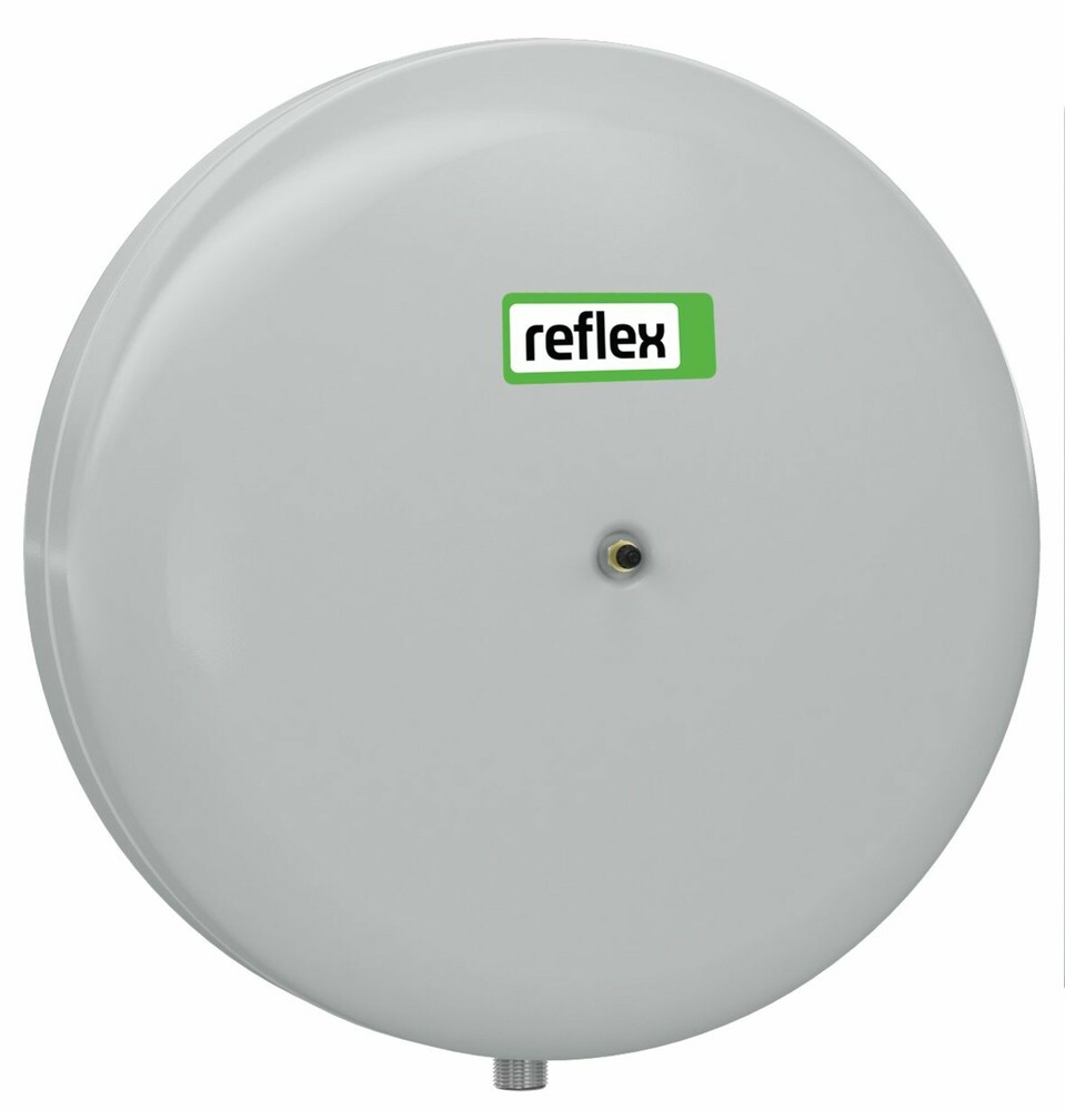 Reflex. C. Expansievaten. Voor gesloten verwarmings- en koelsystemen. Butyl-membramen volgens DIN EN 13831. Max. bedrijfstemperatuur 70 °C. Cilindrische vorm. Gelast. Inclusief wandmontageplaat. Voor toevoeging antivriesmiddel tot min. 25-50%.