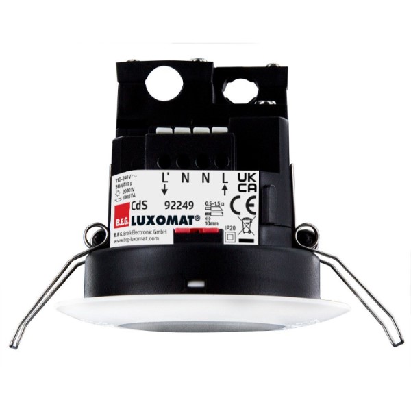 Schemerschakelaar, inbouw Uitvoering sensor:Lichtsensor ingebouwdContacten:1 NO (maak)contactMontagewijze:OverigMateriaal:KunststofKwaliteitsklasse:OverigOppervlaktebescherming:OnbehandeldUitvoering oppervlak:MatKleur:WitGeschikt voor beschermingsgraad (IP):IP20